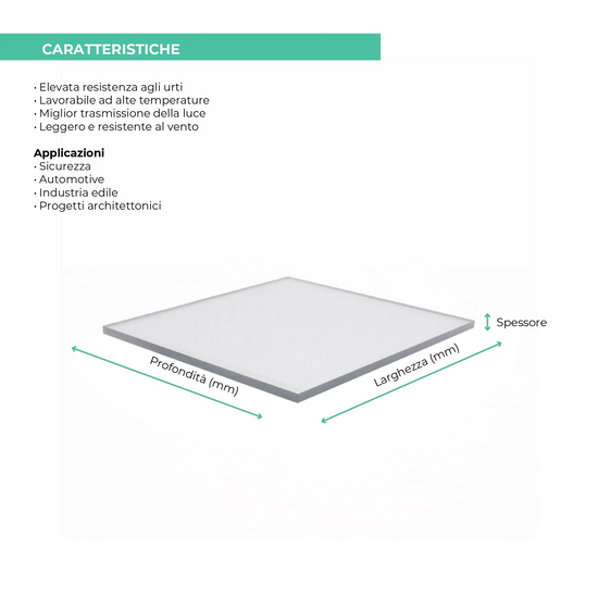 Policarbonato Compatto 4 mm Trasparente protetto UV