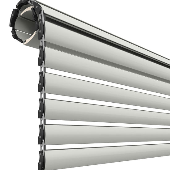 Tapparella avvolgibile frangisole in alluminio estruso. Un sistema innovativo e allo stesso tempo ingegnoso capace di combinare due caratteristiche opposte come la protezione e l'areazione grazie a un sistema che distanzia le stecche garantendo durabilità nel tempo.