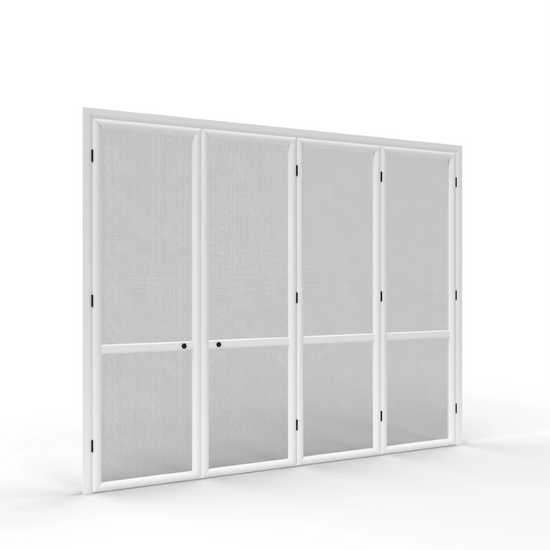 Cerchi una zanzariera a porta? Sei nel posto giusto! La nostra zanzariera a battente Swing (4 Ante) ha di serie la rete in alluminio naturale, resistente e robusta. Perfetta per essere installata in luoghi di passaggio.