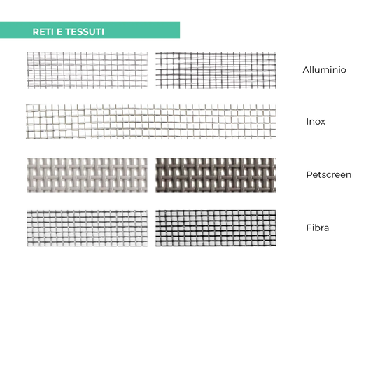 • Rete in Fibra di Vetro: Resistente e duratura, offre una buona visibilità e ventilazione.