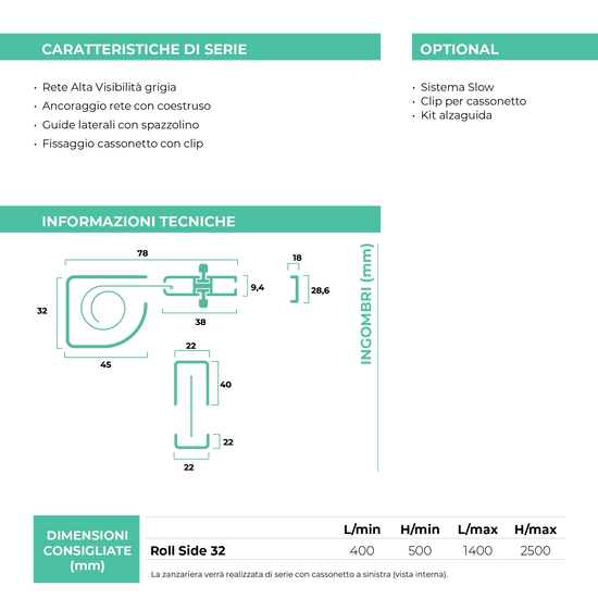 La zanzariera Roll Side 32 ha un ingombro di 32 mm.