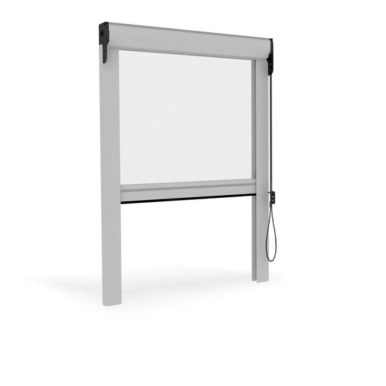 Zanzariera in alluminio Cairon per finestra verticale a molla con azionamento manuale a catena. Permette una totale libertà di movimentazione e consente di fermare la zanzariera in qualsiasi punto d'apertura. Ingombro cassonetto 42 mm.