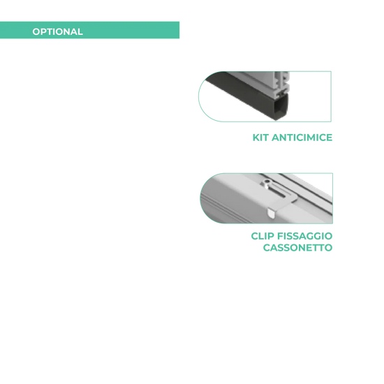 • Avvolgimento Verticale con Azionamento Click Clack: L'apertura e chiusura avviene con una lieve spinta sulla barra maniglia rendendo l'utilizzo della zanzariera semplice e veloce.