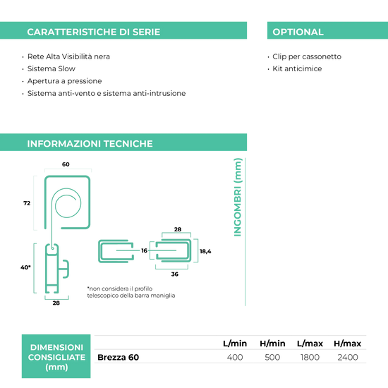 Zanzariera Brezza 60 - Brevetto Antivento Italiano
